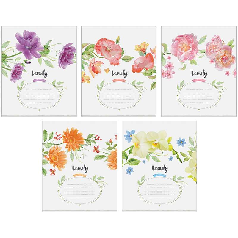 Тетрадь формата А5. Блок - 48 листов, клетка, офсет 60 г/м², белизна 100%. Обложка - импортный целлюлозный мелованный картон. Отделка обложки: выборочный УФ-лак.Тетрадь 48л. А5 клетка "Цветы. Beauty in flower", выб УФ-лак