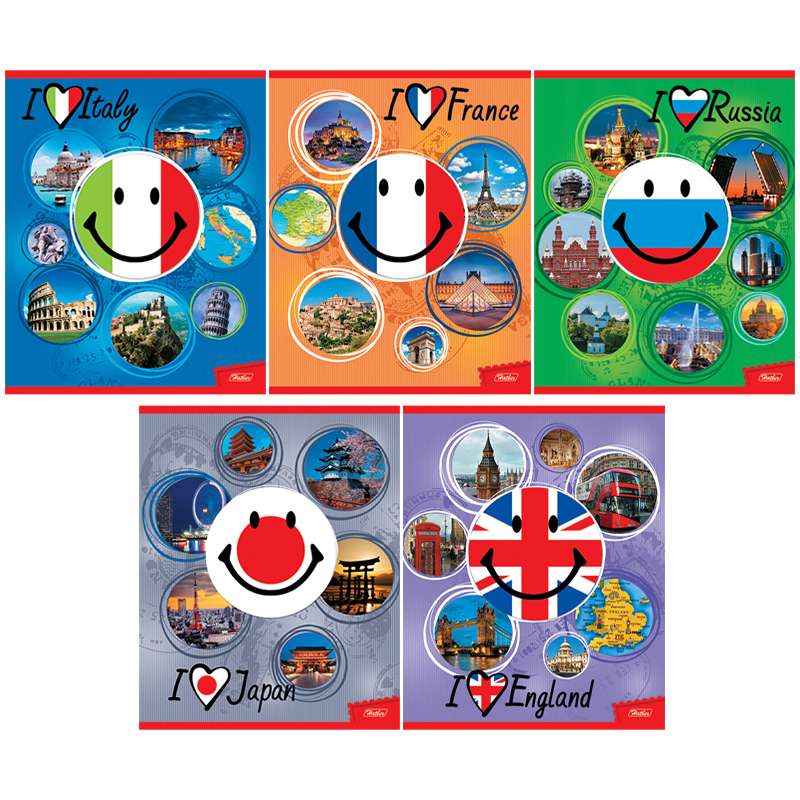 Формат А5. Вид крепления -скрепка. Обложка -мелованный картон. Внутренний блок- офсетный, 60 гр/м2, в клеткуТетрадь 48л., А5, клетка Hatber "I love world"