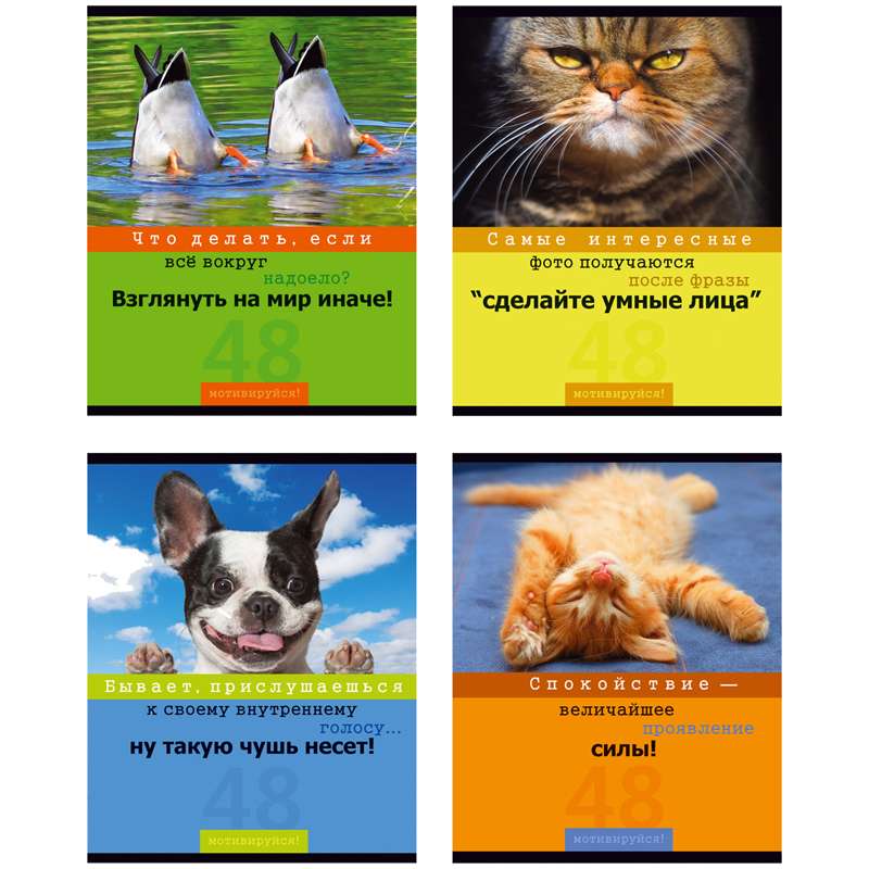 Формат А5. Вид крепления -скрепка. Обложка -мелованный картон с матовой ламинацией. Внутренний блок -офсетный, клетка, 70г/м2Тетрадь 48л. А5 клетка "Мотивируйся!", матовая ламинация