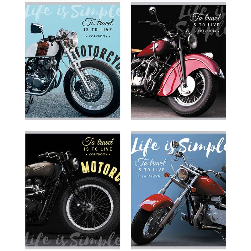 Формат А5. Вид крепления - скрепка. Обложка - мелованный картон. Внутренний блок - офсетный, 60 гр/м2, клеткаТетрадь 48л. А5 клетка "Moto life"