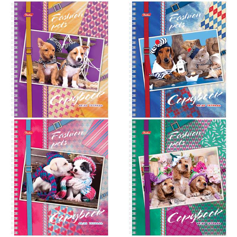Формат А5. Вид крепления -гребень. Обложка -мелованный картон. Внутренний блок -офсетный, 60 гр/2, клеткаТетрадь 48л., А5, клетка на гребне Hatber "Fashion pets"