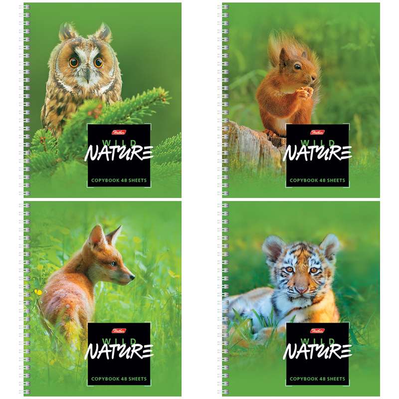 Формат А5. Вид крепления -гребень. Обложка -мелованный картон. Внутренний блок -офсетный, 60 гр/2, клеткаТетрадь 48л., А5, клетка на гребне Hatber "Wild Nature"