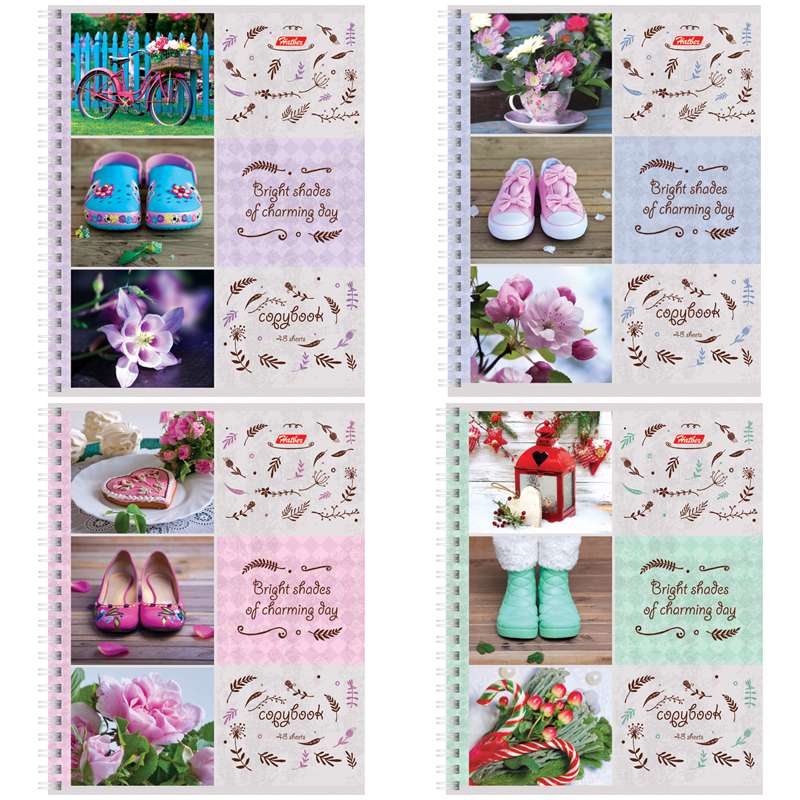 Формат А5. Вид крепления -гребень. Обложка -мелованный картон. Внутренний блок -офсетный, 60 гр/2, клеткаТетрадь 48л., А5, клетка на гребне Hatber "Яркие оттенки дня"