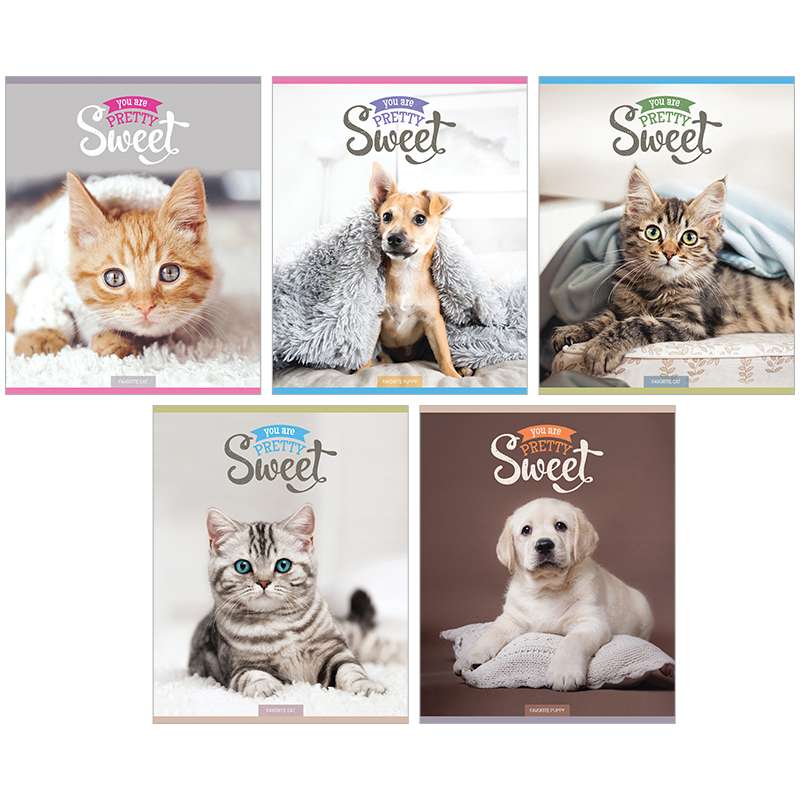 Тетрадь общая 48 л. на скобе, формата А5 (165*205 мм). Внутренний блок – офсет 60 г/м², белизна 100%, клетка. Обложка изготовлена из импортного целлюлозного мелованного картона, отделка обложки – глянцевый УФ-лак.Тетрадь 48л. А5 клетка "Питомцы. Pretty Sweet", глянцевый уф-лак