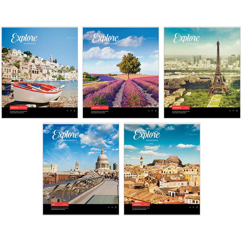 Тетрадь формата А5. Блок - 48 листов, клетка, офсет 60 г/м², белизна 100%. Обложка - импортный целлюлозный мелованный картон.Тетрадь 48л. А5 клетка "Путешествия. Amazing place"