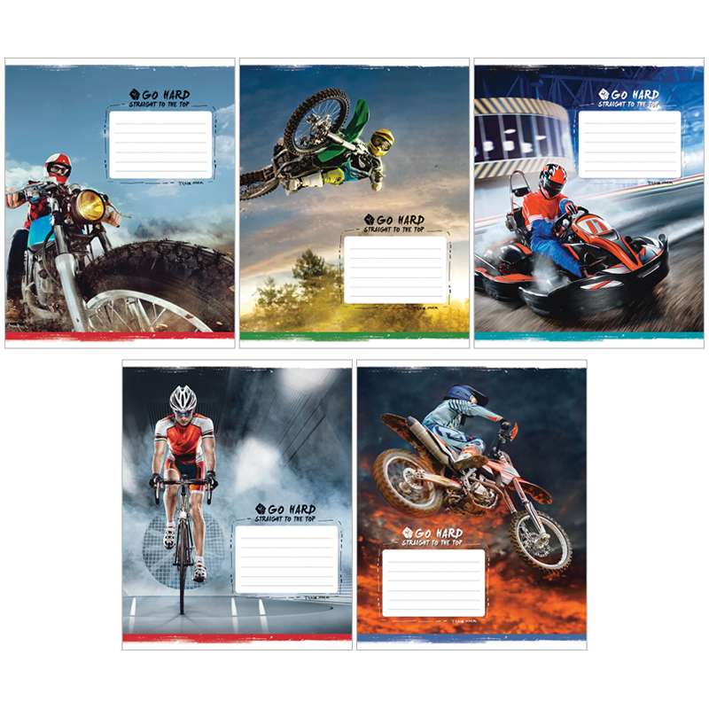 Тетрадь общая формата А5 (165*205 мм) на скобе, 48 листов. Внутренний блок – офсет 60 г/м², белизна 100%, клетка с полями. Обложка изготовлена из импортного целлюлозного мелованного картона, отделка обложки – водный лак.Тетрадь 48л. А5 клетка "Спорт. Straight to the top"