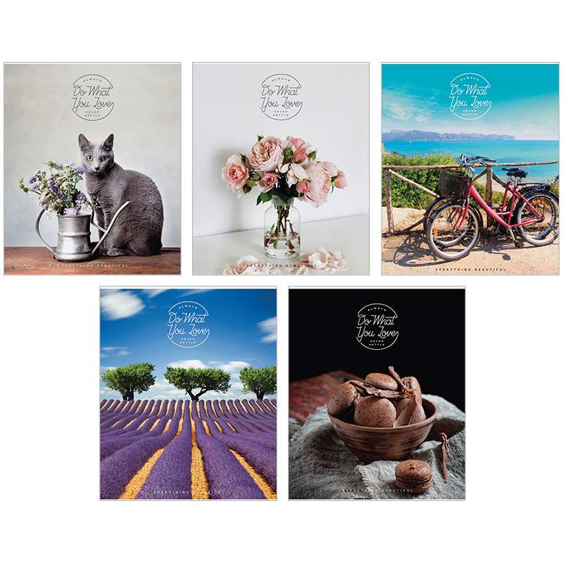 Тетрадь формата А5. Блок - 48 листов, клетка, офсет 60 г/м², белизна 100%. Обложка - импортный целлюлозный мелованный картон. Отделка обложки: тиснение фольгой.Тетрадь 48л. А5 клетка "Стиль. Do what you love", фольга
