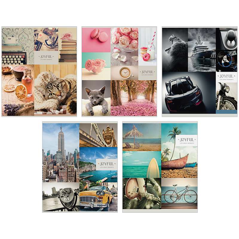 Внутренний блок – офсет 60 г/м². Обложка – мелованный картон, глянцевый УФ-лак. Объем блока – 48 л. Формат А5Тетрадь 48л. А5 клетка "Стиль. Joyful. Great moments", глянцевый УФ-лак