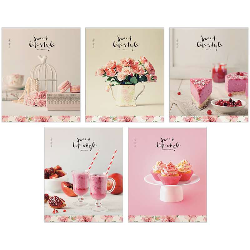 Тетрадь формата А5. Блок - 48 листов, клетка, офсет 60 г/м², белизна 100%. Обложка - импортный целлюлозный мелованный картон. Отделка обложки: матовая ламинация, выборочный УФ-лак.Тетрадь 48л. А5 клетка "Стиль. Sweet lifestyle", выб УФ-лак, матовая ламинация