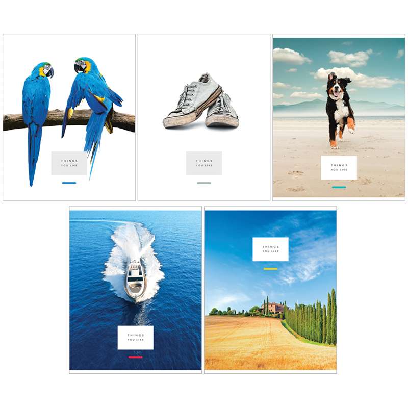 Тетрадь общая формата А5 (165*205 мм) на скобе, 48 листов. Внутренний блок – офсет 60 г/м², белизна 100%, клетка с полями. Обложка изготовлена из импортного целлюлозного мелованного картона, отделка обложки – гибридный выборочный УФ-лак (ТВИН-лак).Тетрадь 48л. А5 клетка "Стиль. Things you like", ТВИН-лак