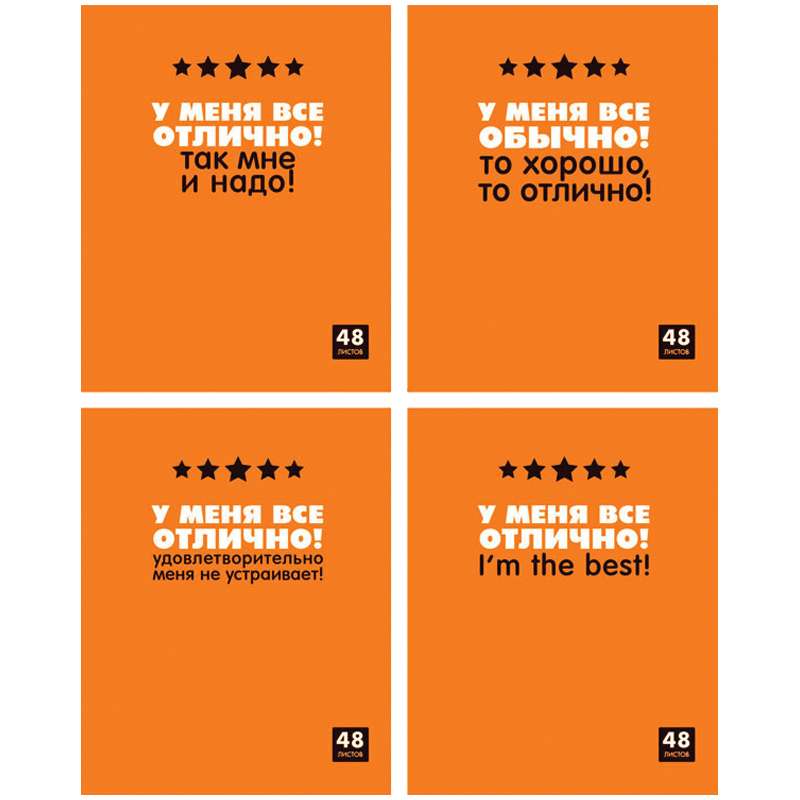 Главная / Товары / КАНЦТОВАРЫ / УПАКОВКА / ХОЗ ТОВАРЫ / РАСХОДНЫЕ МАТЕРИАЛЫ / Канцелярские товары - Школьные / Тетради / Тетради 40-48 листов / Тетрадь 48л., А5, клетка BG "У меня все отлично", выборочный уф-лак