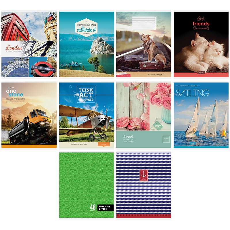 Внутренний блок – офсет 60 г/м². Обложка – мелованный картон. Объем блока – 48 л. Формат А5Тетрадь 48л., А5, линия ArtSpace "Микс. Стандарт"