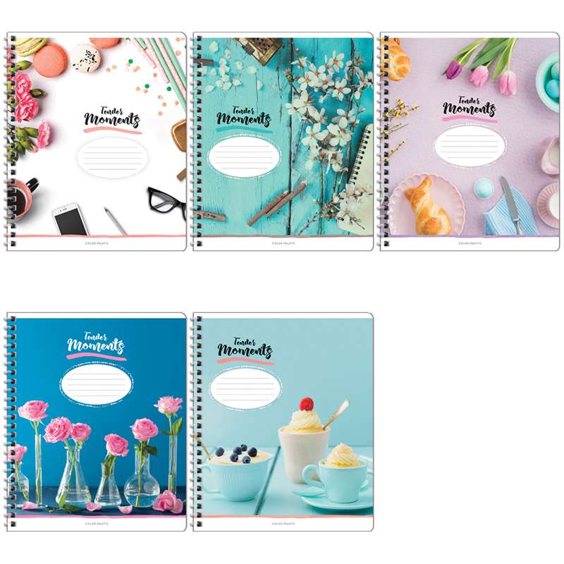Тетрадь общая формата А5 (165*205 мм) на гребне, 96 листов. Внутренний блок – офсет 60 г/м², белизна 100%, клетка без полей. Обложка изготовлена из импортного целлюлозного мелованного картона, отделка обложки – гибридный выборочный УФ-лак (ТВИН-лак).245158 Тетрадь 96л. А5 клетка на гребне ArtSpace"Стиль. Tender moments", ТВИН-лак Т96спкТЛ_13747[РЦ]