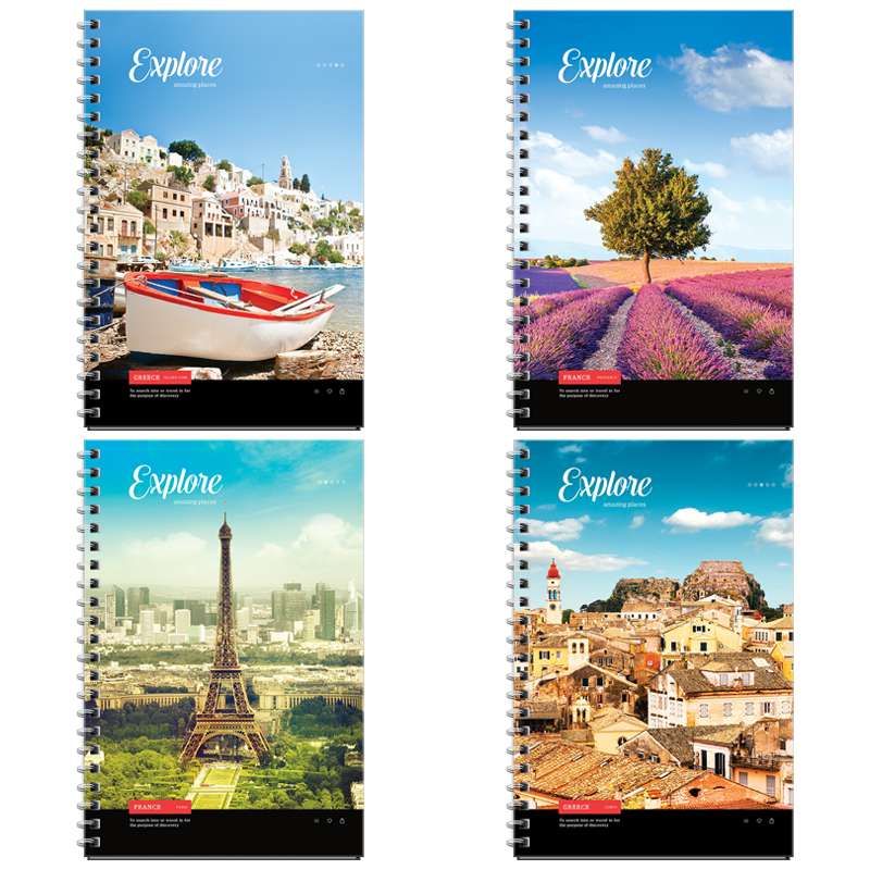 Тетрадь для записей формата А5, 80 листов, в твердой обложке с глянцевой ламинацией. Внутренний блок - белая офсетная бумага плотностью 55 г/кв.м, в клетку без полей.Тетрадь 80л. А5 клетка на гребне "Путешествия. Amazing place", твердая обложка
