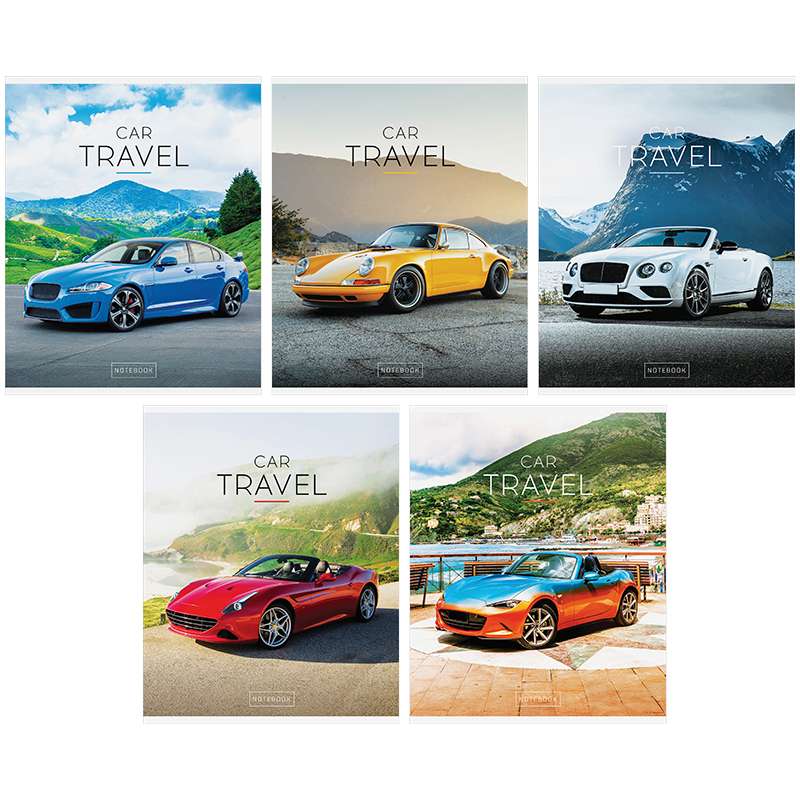Тетрадь общая 96 л. на скобе, формата А5 (165*205 мм). Внутренний блок – офсет 60 г/м², белизна 100%, клетка. Обложка изготовлена из импортного целлюлозного мелованного картона, отделка обложки – глянцевый УФ-лак.Тетрадь 96л. А5 клетка "Авто. Car travel", глянцевый уф-лак