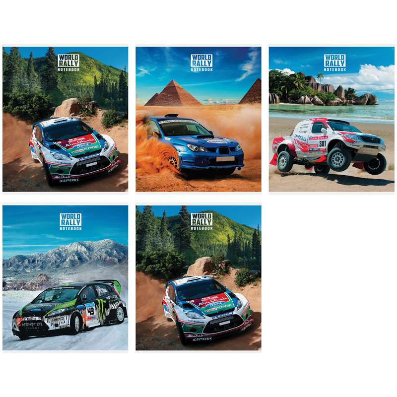 Формат А5. Вид крепления -скрепка. Внутренний блок – офсет 60 г/м²., клетка. Обложка – мелованный картон.Тетрадь 96л. А5 клетка "Авто. World rally"