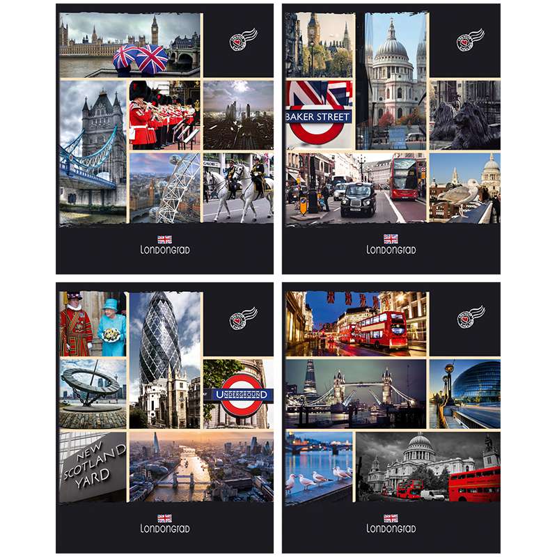 Формат А5. Вид крепления -скрепка. Обложка -мелованный картон. Внутренний блок-офсетный, клетка, 60г/м2Тетрадь 96л. А5 клетка "Londongrad"