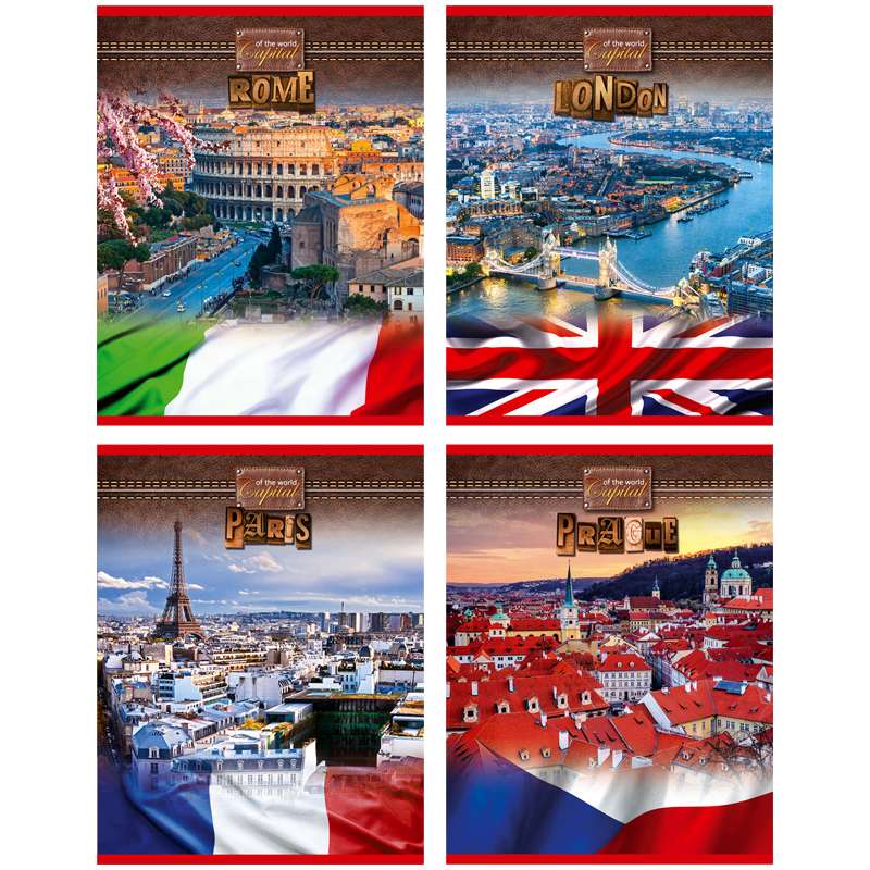 Формат А5. Вид крепления -гребень. Обложка -мелованный картон. Внутренний блок -офсетный, клетка, 60 г/м2Тетрадь 96л., А5, клетка на гребне BG "Capital World"