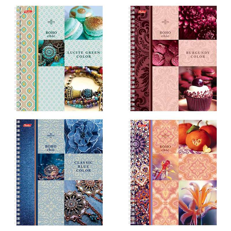 Формат А5. Вид крепления -гребень. Обложка -мелованный картон. Внутренний блок -офсетный, 60 г/м2, клетка.Тетрадь 96л., А5, клетка на гребне Hatber "Чудесные краски Boho CHic"