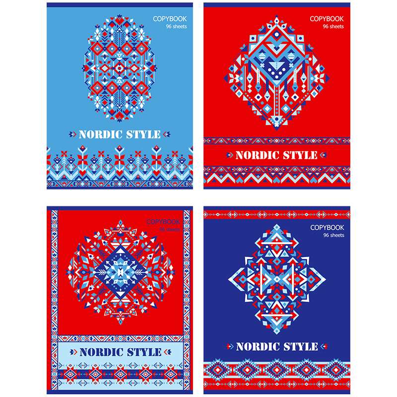 Формат А5. Вид крепления -гребень. Обложка -мелованный картон. Внутренний блок -офсетный, 60 гр/м2, клеткаТетрадь 96л. А5 клетка на гребне "Nordic"