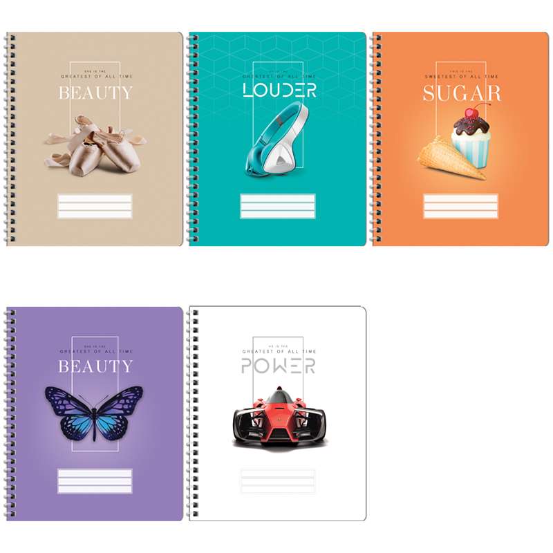 Тетрадь общая формата А5 (165*205 мм) на гребне, 96 листов. Внутренний блок – офсет 60 г/м², белизна 100%, клетка без полей. Обложка изготовлена из импортного целлюлозного мелованного картона, отделка обложки – водный лак.Тетрадь 96л. А5 клетка на гребне "Стиль. Greatest of all time"