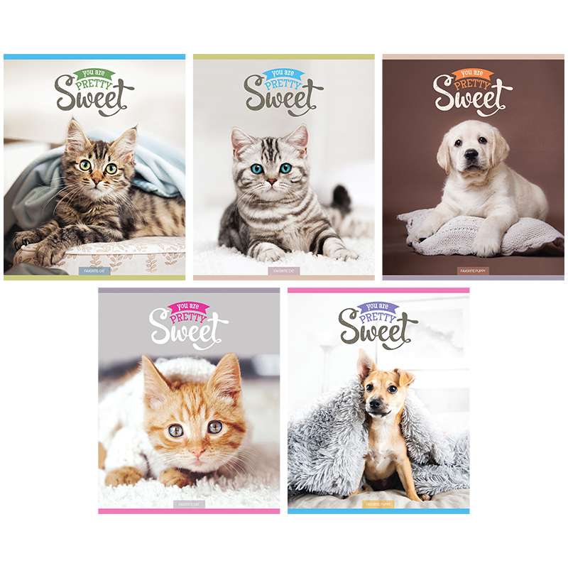Тетрадь общая 96 л. на скобе, формата А5 (165*205 мм). Внутренний блок – офсет 60 г/м², белизна 100%, клетка. Обложка изготовлена из импортного целлюлозного мелованного картона, отделка обложки – ВД-лак.Тетрадь 96л. А5 клетка "Питомцы. Pretty sweet"