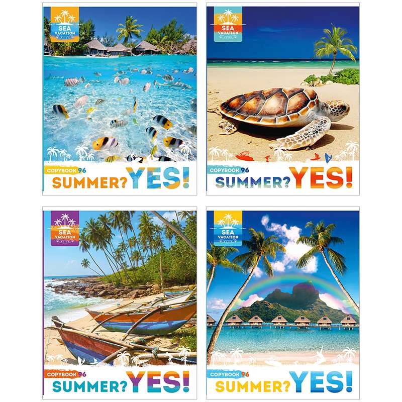 Формат А5. Вид крепления -скрепка. Обложка -мелованный картон. Внутренний блок-офсетный, клетка, 60г/м2Тетрадь 96л. А5 клетка "Sea vacation!"