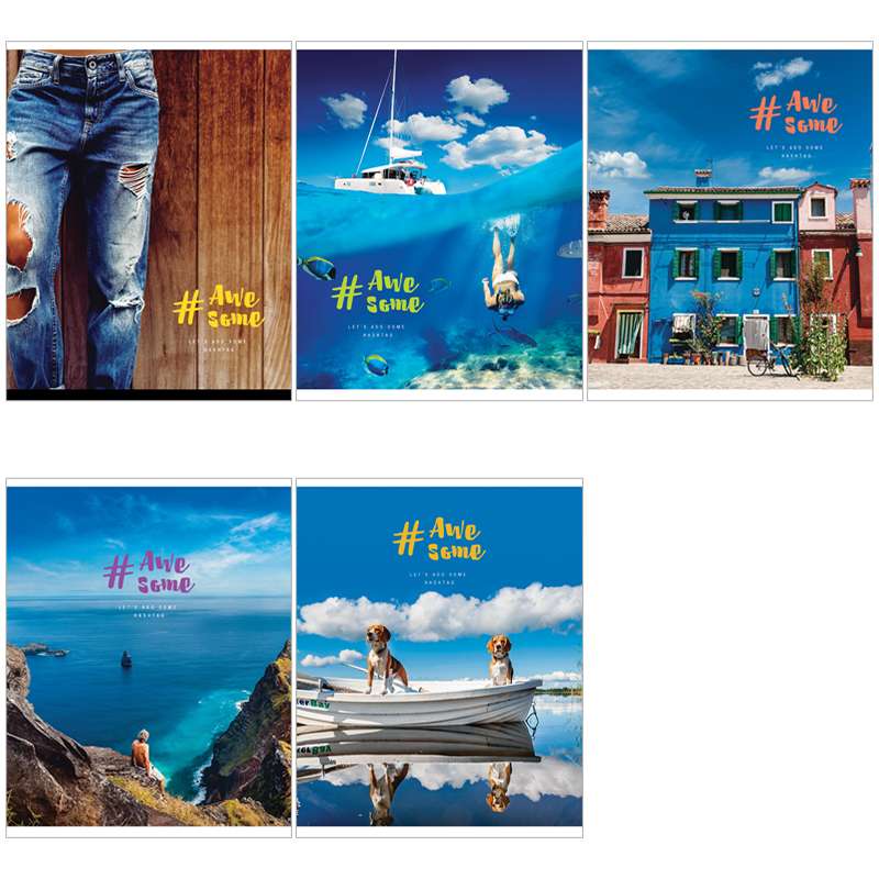 Тетрадь общая формата А5 (165*205 мм) на скобе, 96 листов. Внутренний блок – офсет 60 г/м², белизна 100%, линия с полями. Обложка изготовлена из импортного целлюлозного мелованного картона, отделка обложки – глянцевый уф-лак.Тетрадь 96л. А5 линия "Путешествия. Awesone", глянцевый уф-лак