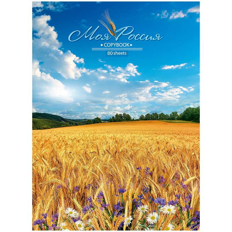 Формат А4. Вид крепления -гребень. Обложка -мелованный картон с глянцевой ламинацией. Внутренний блок -офсетный 60 гр/м2 в клеткуТетрадь 80л. А4 клетка на гребне "Моя Россия", глянцевая ламинация