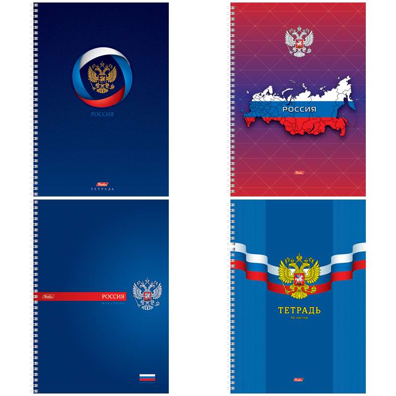 Формат А4. Вид крепления -гребень. Обложка -мелованный картон. Внутренний блок -офсетный, клетка, 60 г/м2Тетрадь 96л., А4, клетка на гребне Hatber "Россия"
