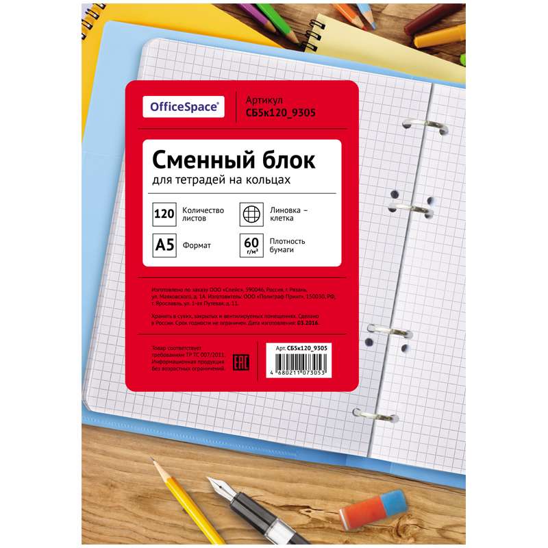 Главная / Товары / КАНЦТОВАРЫ / УПАКОВКА / ХОЗ ТОВАРЫ / РАСХОДНЫЕ МАТЕРИАЛЫ / Канцелярские товары - Школьные / Тетради / Тетради на кольцах / Сменный блок 120л., А5, OfficeSpace, белый