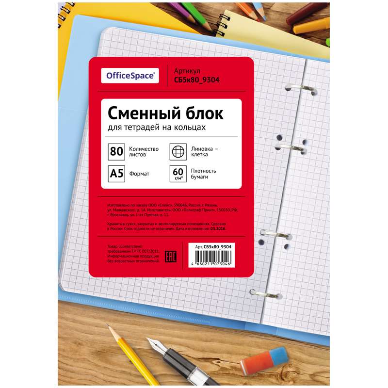 Главная / Товары / КАНЦТОВАРЫ / УПАКОВКА / ХОЗ ТОВАРЫ / РАСХОДНЫЕ МАТЕРИАЛЫ / Канцелярские товары - Школьные / Тетради / Тетради на кольцах / Сменный блок 80л., А5, OfficeSpace, белый