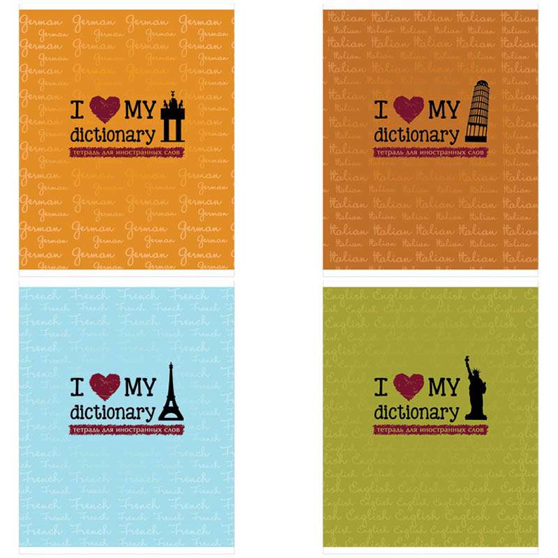 Формат А5. 48 листов. Крепление- скрепка. Внутренний блок - офсет 60 гр/м2 с блоком для записи словТетрадь-словарик 48л. А5 для записи иностранных слов "Dictionary"