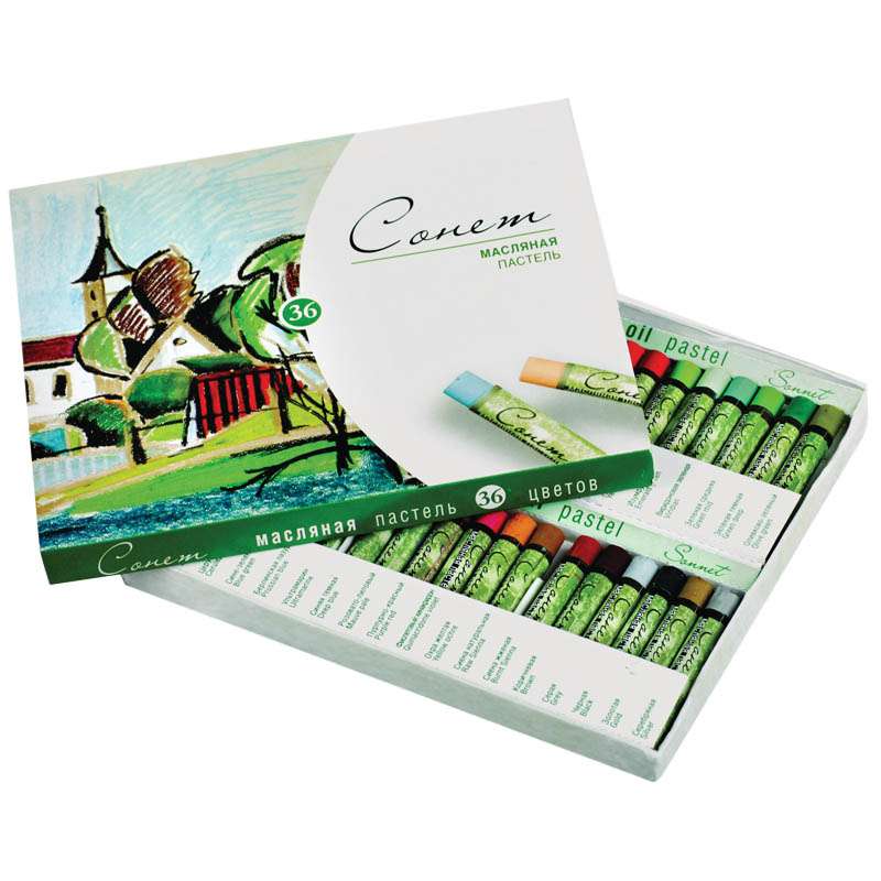 Обладает интенсивностью и яркостью цвета, хорошей кроющей способностью, смешиваемостью и мягкостью. Пастель легко ложится на различные фактуры цветной бумаги, бумагу для рисования, картон, дерево, керамику. Пастелью удобно работать на открытом воздухе. Закреплять рисунок, выполненный масляной пастелью, не нужно в отличие от сухой.Пастель масляная Сонет, 36 цветов, картон. упак.