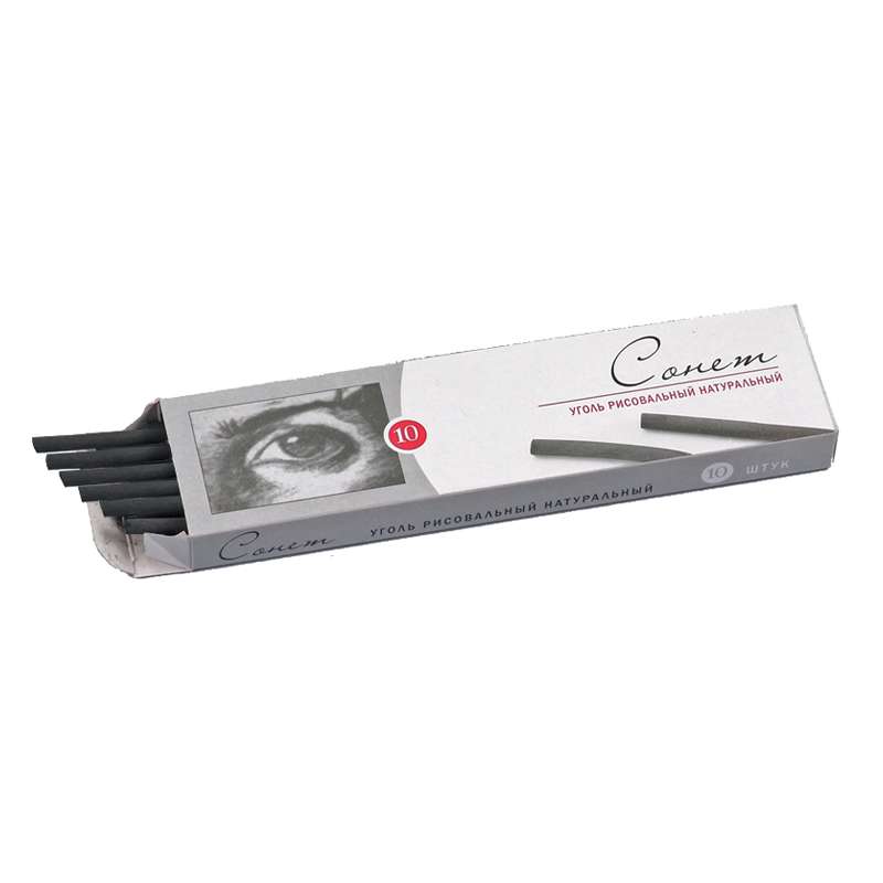 Используются при подготовке картин, выполнении эскизов, набросков и зарисовок, в графике. Обладают большими пластическими возможностями, бархатистым тоном и богатством оттенков. Легко ложатся на холст, картон и бумагу. Форма выпуска: уголь натуральный в наборах по 3, 4, 6, 7 и 10 штук одинакового размера в картонных коробочках и угольный карандаш.Уголь для рисования натуральный Сонет, 170мм, диаметр-4/6 мм, набор 10шт., картон. упак.