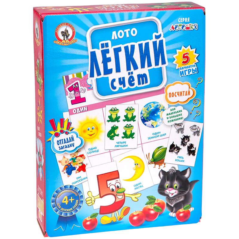 Главная / Товары / КАНЦТОВАРЫ / УПАКОВКА / ХОЗ ТОВАРЫ / РАСХОДНЫЕ МАТЕРИАЛЫ / Канцелярские товары - Школьные / Товары для творчества и хобби / Игры и развивающие товары / Игры настольные и напольные / Игра настольная Лото, Русский стиль "Легкий счет", картонная коробка