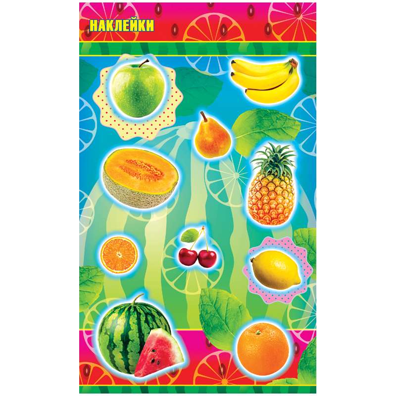 Самоклеящиеся наклейки А5 формата. Наклейками можно украсить свою комнату, тетради, книги.Наклейки Лис "Фрукты", A6