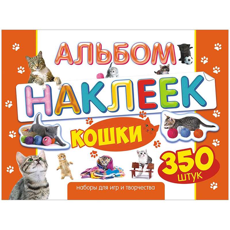 Размер в сложенном виде 210х292 мм. Обложка: картон 180 г/м, УФ лак. Наклеечный блок: 8 страниц.Наклейки Лис в альбоме "Кошки", A4, 350шт.