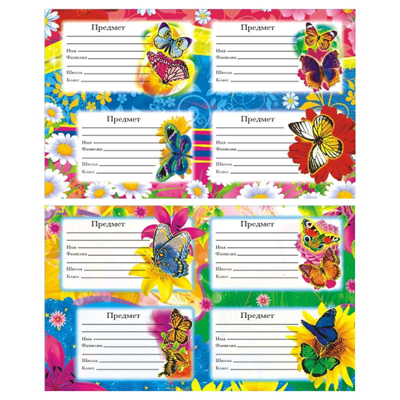 Самоклеящиеся наклейки А5 формата. Наклейками можно украсить тетради и учебники. Они позволяют вписать свои личные данные.Наклейки на тетрадь А6 "Бабочки"