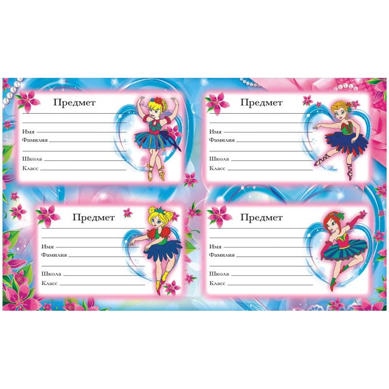 Самоклеящиеся наклейки А5 формата. Наклейками можно украсить тетради и учебники. Они позволяют вписать свои личные данные.Наклейки на тетрадь А6 "Девочки"