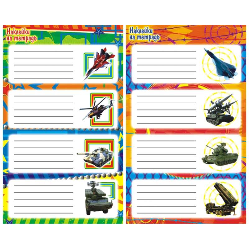 Самоклеящиеся наклейки А5 формата. Наклейками можно украсить тетради и учебники. Они позволяют вписать свои личные данные.Наклейки на тетрадь Лис "Военная техника", A6