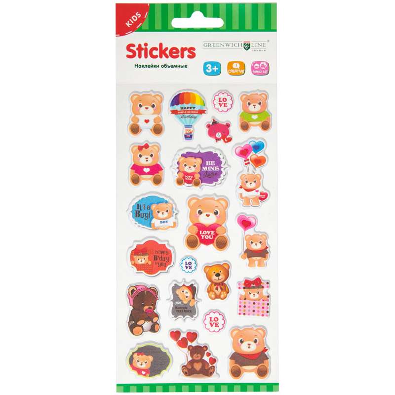 Главная / Товары / КАНЦТОВАРЫ / УПАКОВКА / ХОЗ ТОВАРЫ / РАСХОДНЫЕ МАТЕРИАЛЫ / Канцелярские товары - Школьные / Товары для творчества и хобби / Игры и развивающие товары / Наклейки / Наклейки объемные Greenwich Line "Медвежата", 10*19см, пакет, европодвес