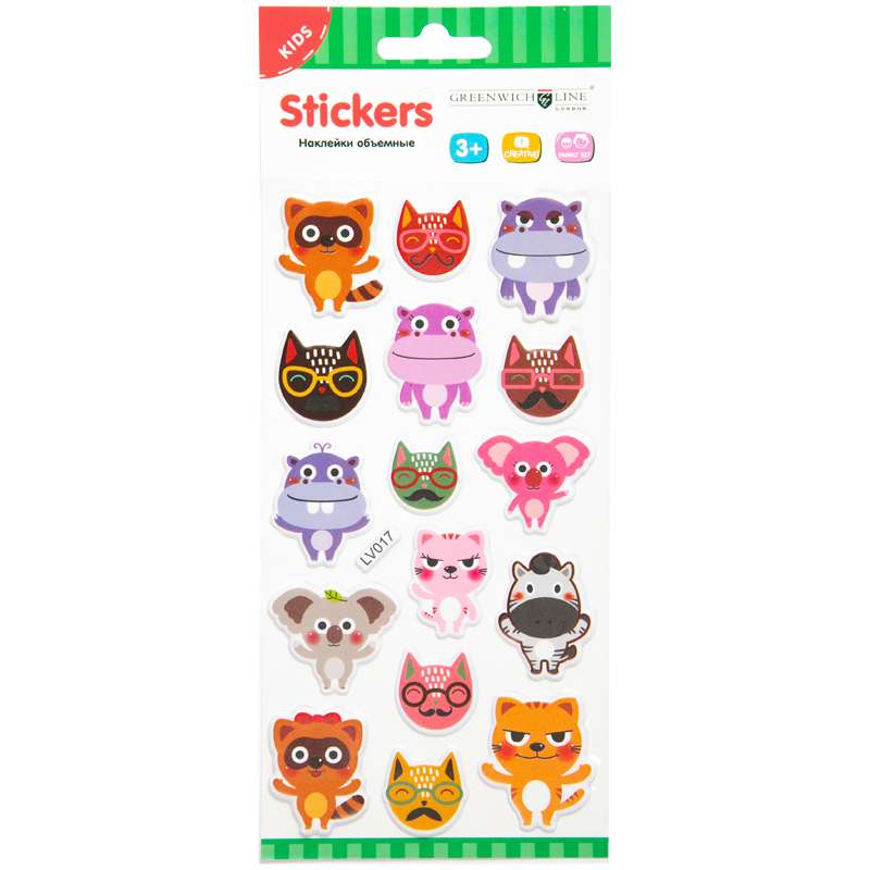 Главная / Товары / КАНЦТОВАРЫ / УПАКОВКА / ХОЗ ТОВАРЫ / РАСХОДНЫЕ МАТЕРИАЛЫ / Канцелярские товары - Школьные / Товары для творчества и хобби / Игры и развивающие товары / Наклейки / Наклейки объемные Greenwich Line "Забавные животные", 10*19см, пакет, европодвес