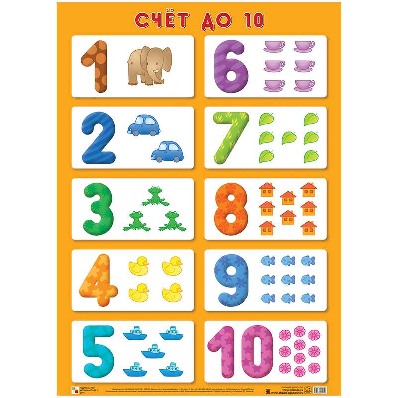 Главная / Товары / КАНЦТОВАРЫ / УПАКОВКА / ХОЗ ТОВАРЫ / РАСХОДНЫЕ МАТЕРИАЛЫ / Канцелярские товары - Школьные / Товары для творчества и хобби / Игры и развивающие товары / Плакаты / Плакат настенный А2, Мозаика-Синтез "Цифры - счет от 1 до 10"