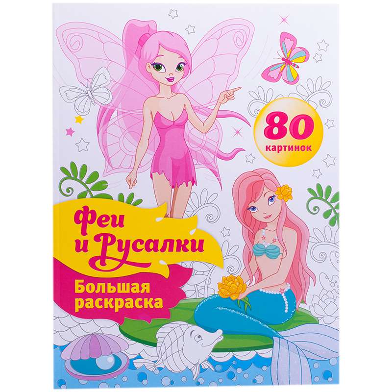 Большая раскраска для детей младшего и среднего возраста. Сказочные феи и русалки понравятся девочкам, а процесс раскрашивания поможет развить моторику, память и творческие способности. Блок - офсетная бумага 100 гр/м2, 80 страниц. Формат 213*285, на склейке. Обложка выполнена из мелованного картона с глянцевой ламинацией.Большая раскраска А4, "Феи и русалки", 80стр., склейка