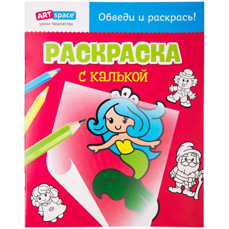 Раскраска с калькой, для раскрашивания картинок по образцу. Блок полноцветный. Благодаря листам кальки дети могут обводить персонажей по кальке и раскрашивать их по своему усмотрению. Рекомендуем для совместных занятий родителей с детьми дошкольного и младшего школьного возраста.Раскраска A4, ArtSpace "Русалочка", 10стр., с калькой