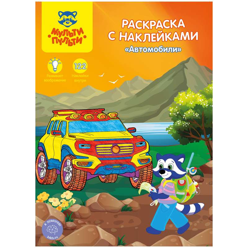 Раскраски Мульти-Пульти - незаменимый помощник в творческом развитии ребенка. Раскрашивание развивает мелкую моторику, воображение, способствует формированию цветового восприятия ребенка. Наклейки сделают работу над раскраской еще более увлекательной.Раскраска А4 "Автомобили", 16стр., с наклейками