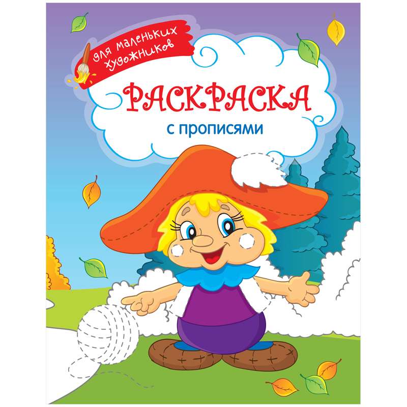 Раскраска с элементами прописей для детей младшего возраста. Ребенку нужно обвести по контурам некоторые элементы персонажа и раскрасить его. Развивает моторику, память и творческие способности. Блок - офсетная бумага 100 г/м2, 16 страниц, на скобе. Обложка - плотная мелованная бумага.Раскраска А4 "Для маленьких художников - Боровичок", 16стр.