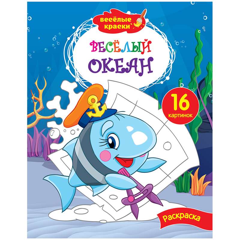 Раскраска для детей младшего возраста. Развивает моторику, память и творческие способности. Блок - офсетная бумага 100 г/м2, 16 страниц, на скобе. Обложка - мелованный картон.Раскраска А4 "Весёлые краски - Весёлый океан", 16стр.