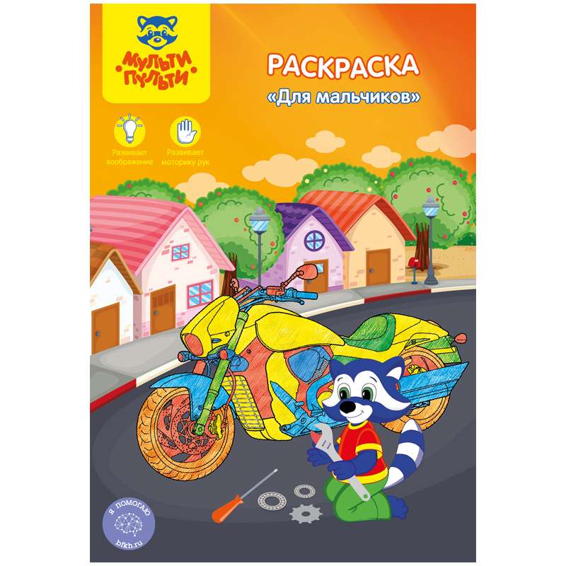 Раскраски Мульти-Пульти - незаменимый помощник в творческом развитии ребенка. Раскрашивание развивает мелкую моторику, воображение, способствует формированию цветового восприятия ребенка.Раскраска А5 "Для мальчиков", 16стр.